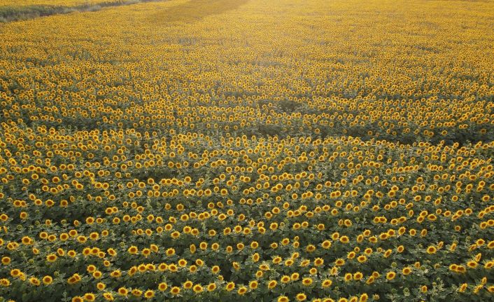 Adını Düvenci beldesinden alan ve kentin en büyük ovaları arasında yer alan Düvenci Ovası’nda havadan çekilen görüntülerde, uçsuz bucaksız ayçiçeği tarlaları kartpostallık görüntüler oluşturdu.