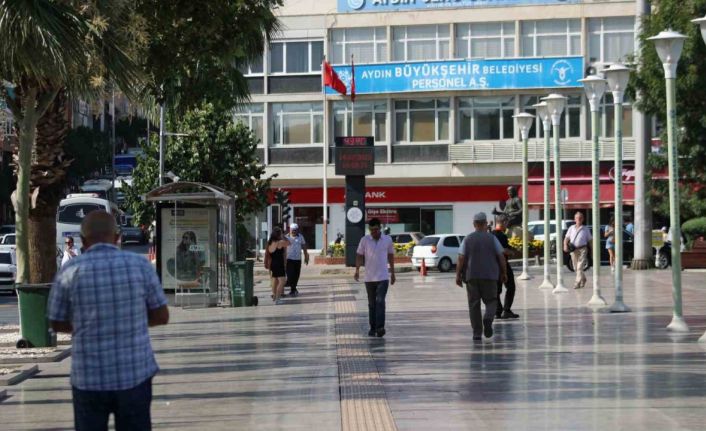 Yaz aylarının gelmesi ile birlikte ülke genelinde hava sıcaklıkları artmaya başlarken, Aydın’da da sıcaklıklar mevsim normallerinin üzerine çıkmaya başladı. Temmuz ayı sıcaklık ortalaması 28,3 derece olan Aydın’da termometreler 43 dereceyi gösterdi. Atatürk Kent Meydanı’nda bulunan termometre akşamüzeri 43 dereceye ulaşırken, vatandaşlar ise adeta sığınacak gölge aradı. Güneşten korunmak isteyen birçok vatandaş ise park ve bahçelerde serinlemeye çalıştı. Meteoroloji verilerine göre hava sıcaklıklarının önümüzdeki haftalarda daha da yükseleceği tahmin ediliyor. Aydın’ın merkez ilçesi Efeler başta olmak üzere il genelinde artan hava sıcaklıkları sebebiyle uzmanlar ise vatandaşları mecbur kalmadıkça öğle saatlerinde dışarıya çıkmamaları konusunda tavsiyede bulundu.