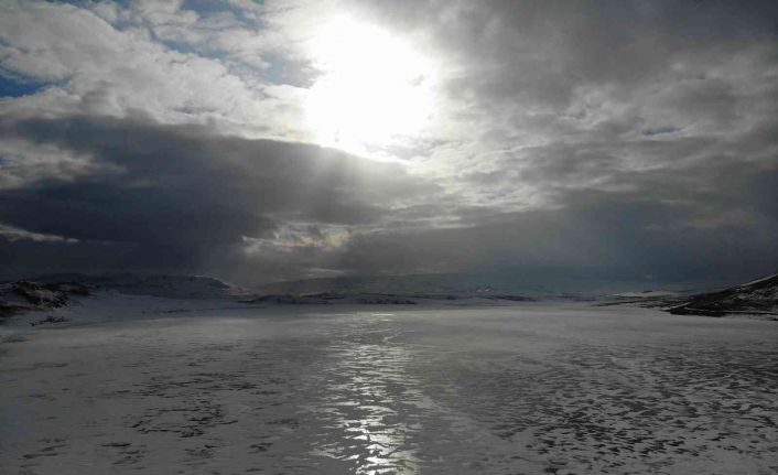 Üzeri tamamen buz tutan Aygır Gölü’nün havaların sıcak gitmesiyle birlikte yavaş yavaş çözülmesi kamaraya yansıdı.