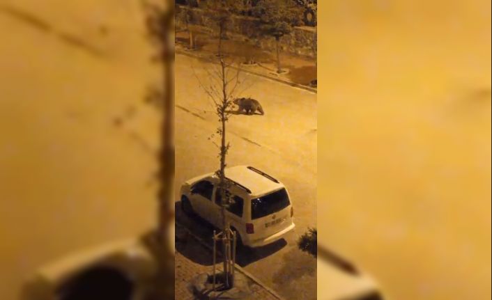 Görüntülerde, ayının caddede sağa sola bakınarak ilerlediği daha sonra hızla gözden kaybolduğu görülüyor.