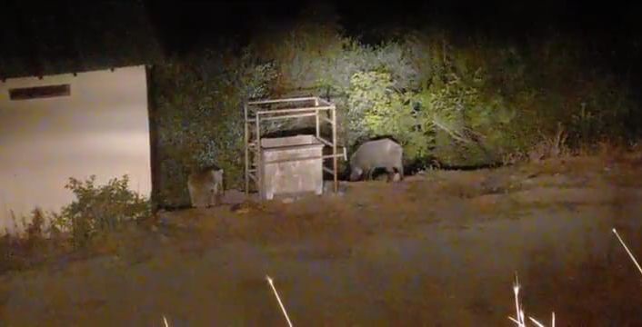 Tunceli’nin Pülümür ilçesinde bulunan bir mezbahane ayı ve domuzlar tarafından mesken tutuldu. Mezbahanenin konteynerine atılan sakatat ve hayvan iç organlarından karınlarını doyuran ayılar, daha sonra bölgeden uzaklaşıyor.