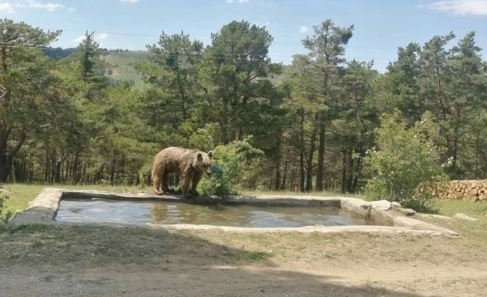 Yozgat’ta sıcaktan bunalan ayının havuz keyfi böyle görüntülendi.