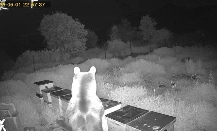 Antalya’nın Gazipaşa ilçesinde arı kovanlarına ayının saldırdığı anlar güvenlik kamerasına yansıdı.