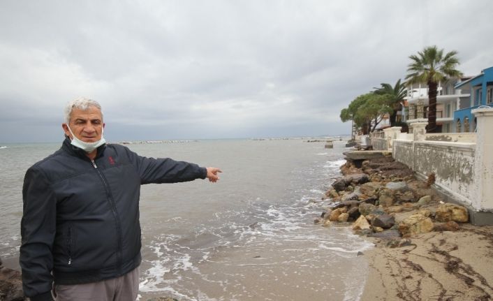 Bölge sakinlerinden Metin Tunçalp, erozyon sorununun yaklaşık 20 yıldan bu yana süregeldiğini kaydederek, “Buraya biz bir yıl önce site yönetiminde görev yaparken, evlerimizin sahil kısmına kendimize göre taşlar döktük. Bu döktüğümüz taşlar hakkında bizi şikayet ettiler. Belediyeden, valilikten, kaymakamlıktan gelip bize ceza yazdılar. Döktüğümüz taşlar da çare olmadı. Oysa yetkili kurumların burada yaşanılan sorunu gelip de yerinde incelemeleri lazım. Burada milyarlık konutlar var. Ama ne yazık ki şu anda bu evler her an denize kayıp yıkılma tehlikesi ile karşı karşıya. Bu bölgeye mendirekleri yapıldı. Ama bunların pek faydası olmadı. Kanalizasyonlar erozyonun olduğu bu bölgeden denize dökülüyor. Sağlık örgütleri nerede? Bütün pislik denize akıyor. Ama lafa gelince herkes konuşuyor. Oysa burada vatandaşlar da risk altında” dedi.