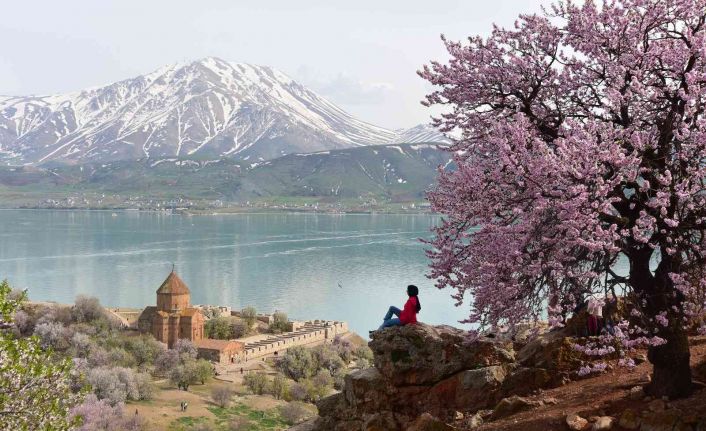 Van Gölü’nde bulunan ve nisan ayında badem ağaçlarının çiçekleriyle süslenen Akdamar Adası, seyri doyumsuz görsel şölen sunuyor.