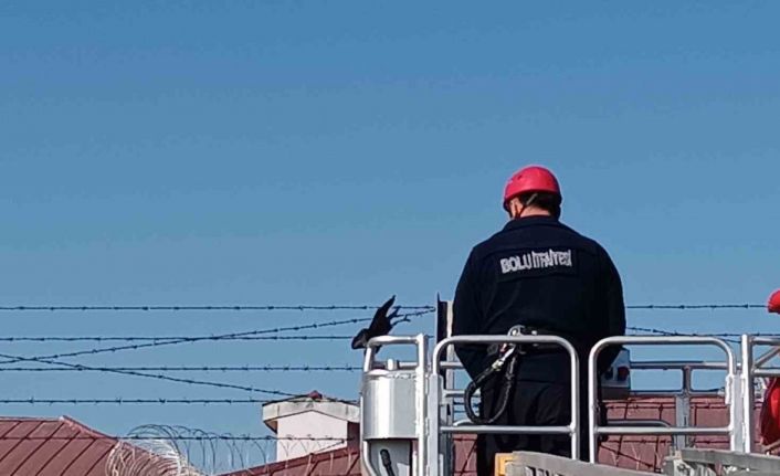 Bolu’da bahçe tellerine takılarak mahsur kalan karga, itfaiye ekipleri tarafından kurtarıldı.