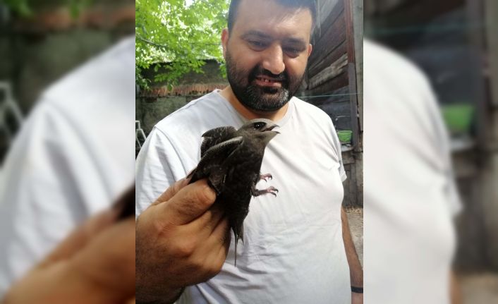Çorum’un İskilip ilçesinde evinin bahçesine düşen ebabil kuşunu bulan vatandaş, kuşu besleyip su verdikten sonra doğaya saldı.