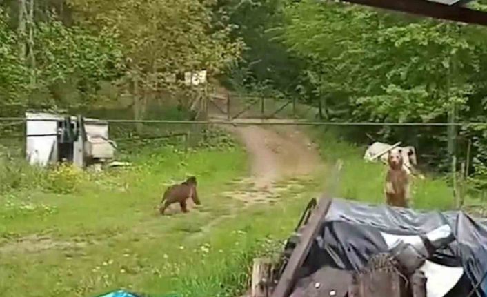 Bolu’nun Mengen ilçesinde aç kalan 2 ayı, köy merkezine inerek bir vatandaşın bahçesine girdi. Bahçesine giren 2 ayıyı gören vatandaş, bağırarak ayıları uzaklaştırdı. O anlar kaydedildi.