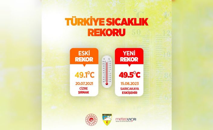 Bakan Özhaseki, sosyal medya hesabından yaptığı paylaşımda “Ülkemizi etkisi altına alan sıcak hava dalgasının etkisiyle, bugün Türkiye’de sıcaklık rekoru kırıldı. Çevre, Şehircilik ve İklim Değişikliği Bakanlığı Meteoroloji Genel Müdürlüğümüz verilerine göre; en yüksek sıcaklık 49,5 C ile Eskişehir Sarıcakaya’da ölçüldü. Eski rekor 20 Temmuz 2021’de 49,1 C ile Şırnak Cizre’de ölçülmüştü” ifadelerini kullandı.