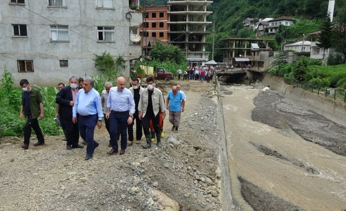 RİZE (İHA) - İçişleri Bakanı Süleyman Soylu ve Ulaştırma ve Alt Yapı Bakanı Adil Karaismailoğlu Muradiye beldesinde selde yıkılan 3 katlı binanın bulunduğu alanda incelemelerde bulundu.