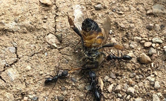 Yüksek rakımlı yaylaya çıkarılan bal arıları karıncalara yem oluyor. 4 karıncanın kanatları yaralı bal arısını öldürme ve yem için yuvaya götürme mücadelesi kameralara yansıdı. İki karınca bal arısının başını tutup çekerken, diğer karıncaların ise arının kanatlarını çekip yuvaya götürmeye çalışması ve arının bunlara karşı mücadele etmesi görenleri hayretler içinde bıraktı. Dakikalarca süren yaşam mücadelesini karıncalar kazanarak bal arısını yuvalarına götürdü.Bal arısı ile 4 karıncanın kavgası kamerada