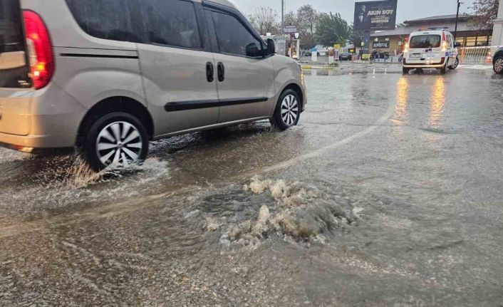 Balıkesir’in Bandırma ilçesinde sabah saatlerinde etkili olan yoğun sağanak yağış, hayatı olumsuz etkiledi. Şiddetli yağmur, cadde ve sokakları göle çevirdi.