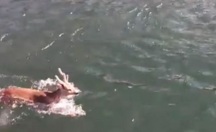 Artvin’de bulunan Borçka Baraj Gölüne düşen karaca, bölgede bulunan marina çalışanları tarafından kurtarıldı. Suda yüzen karacayı gören marina çalışanları tekne yardımıyla karacaya yön vererek karaya çıkarttı.