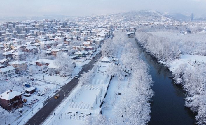 Bartın Irmağı ve çevresinde oluşan kar manzaraları drone ile havadan görüntülendi.