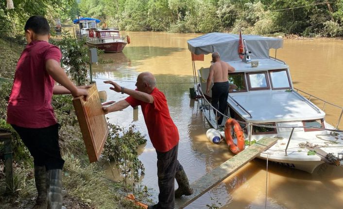 Meteoroloji Genel Müdürlüğünce ‘Kırmızı Kod’ verilen Bartın’da kent merkezinden geçerek Karadeniz’e dökülen Bartın Irmağı taştı. Taşkın sırasında Yalı mevkiinde iskeleye bağlı olan gezi teknesi, sularda sürüklenen kütüklerin çarpması sonucu hasar aldı. Su almaya başlayan teknenin içine 3 adet dalgıç motor kuran itfaiye ekiplerince batmak üzere olan teknedeki suyun tahliyesine başlandı.