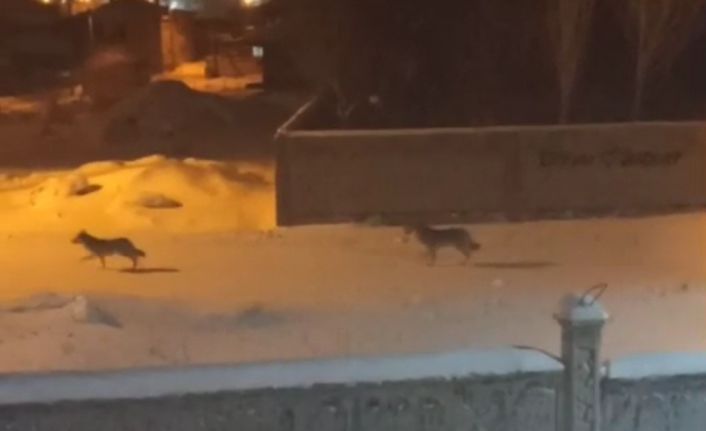 Van’ın Başkale ilçesinde aç kalan kurtlar gece saatlerinde ilçe merkezine inerek yiyecek aradı.