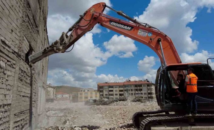 Belediye Başkanı Dr. Evren Dinçer konuşmasının ardından kepçeye binerek son binanın yıkımını gerçekleştirdi.