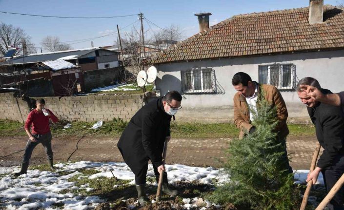 Mustafakemalpaşa Belediye Başkanı Mehmet Kanar, kırsal Yamanlı Mahallesinde liseli gençlerle bir araya gelerek yüzlerce fidanı toprakla buluşturdu.