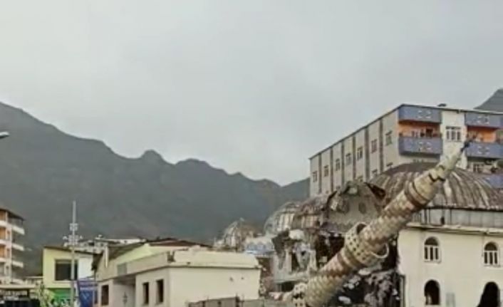 50 yıl önce inşa edilen Sason Merkez Cami’nin daha önce hasar gören ve cami cemaati tarafından yenilenmesine karar verilen minare, il özel idaresi ekiplerince çevrede alınan tedbirlerin ardından halat yardımıyla kontrollü olarak yıkıldı. Yıkılan minarenin yerine yenisi yapılacak.