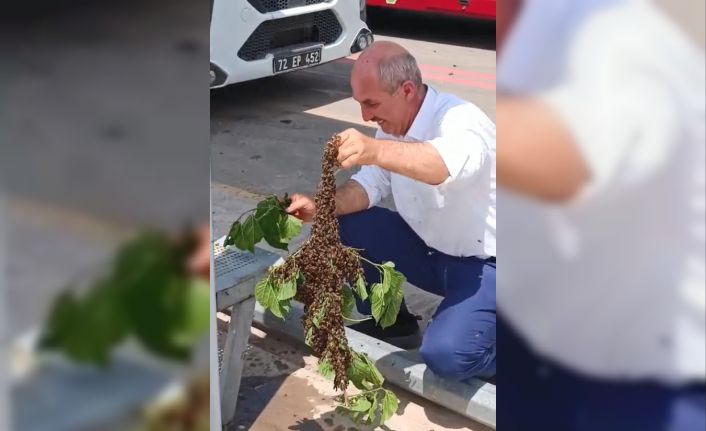 Vatandaşların meraklı bakışları altında arıları toplayan Altun, yaptığı çalışma ile paniğe son verdi. Herhangi bir yaralanmanın yaşanmadığı panik anları, çevredeki vatandaşlar tarafından cep telefonlarıyla kaydedildi.