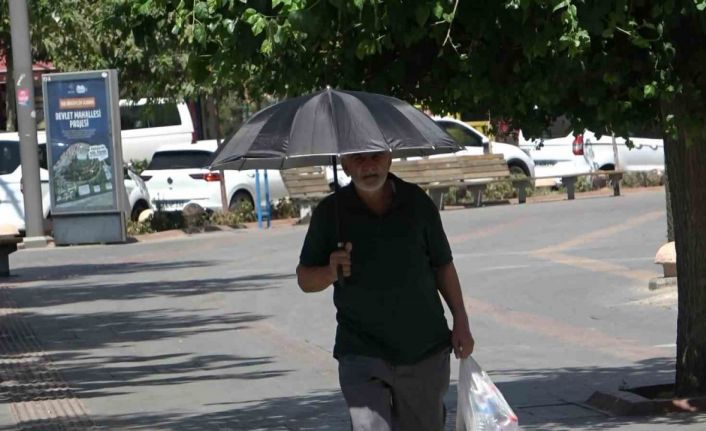 Gölgelik alanlarda serinlemeye çalışan vatandaşlar, gölge olmayan alanlarda ise şemsiye veya dal parçalarıyla güneşten korunmaya çalışıyor. Sıcaktan bunalan köpekler de gölgelik alanlarda güneşten korunmaya çalışıyor.