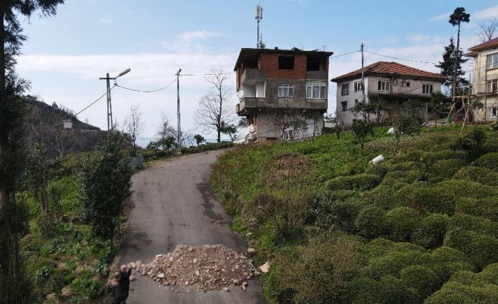 Mahallesinde bir evin çatısına kurulan baz istasyonunun yerinin yanlış olduğunu düşünen Rizeli Temel Mavi hafriyat dökerek mahalle yolunu ulaşıma kapattı.