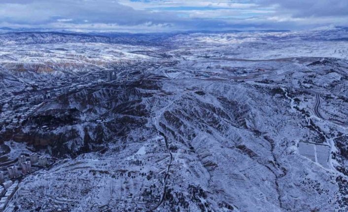 Çankırı’da kar yağışı ile beyaza bürünen kent merkezi havadan görüntülendi.