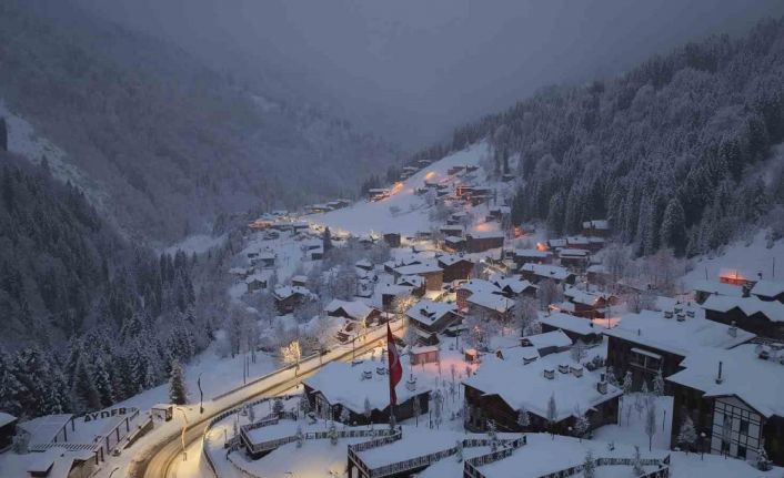 Doğu Karadeniz’in gözde turizm merkezlerinden Ayder Yaylası, kar yağışının etkisi altında bulunuyor. Yaz aylarında yeşilin her tonunu barındıran, kış mevsiminde ise ayrı bir güzelliğe kavuşan Ayder Yaylası, bembeyaz kar örtüsüyle adeta görsel bir şölen sunuyor. Doğal güzelliğiyle her mevsim ziyaretçilerini kendine hayran bırakan Ayder Yaylası, kar yağışı sonrası oluşan manzarasıyla havadan görüntülendi. Ortaya çıkan görüntüler, yaylanın kış turizmindeki cazibesini bir kez daha gözler önüne seriyor.