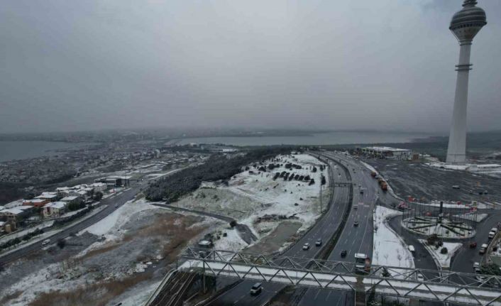 İstanbul’da gece saatlerinde başlayan kar yağışı Beylikdüzü’nde de etkisini gösterdi. Yol kenarları, üst geçitler ve araçlar beyaza büründü. TÜYAP istikametinde ise karla kaplanan araziler, havadan görüntülendi.