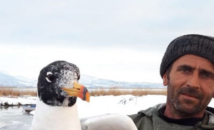Konya’nın Beyşehir ilçesinde balık avlanmak amacıyla Beyşehir Gölü’ne serilen ağa takılan martı, ağın sahibi olan balıkçı tarafından kurtarıldı.
