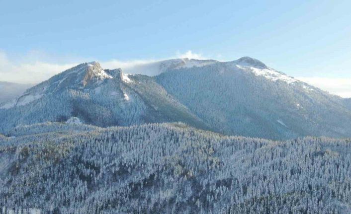 "Yaralıgöz Dağı, kar yağışıyla birlikte adeta gelinliğini giydi"