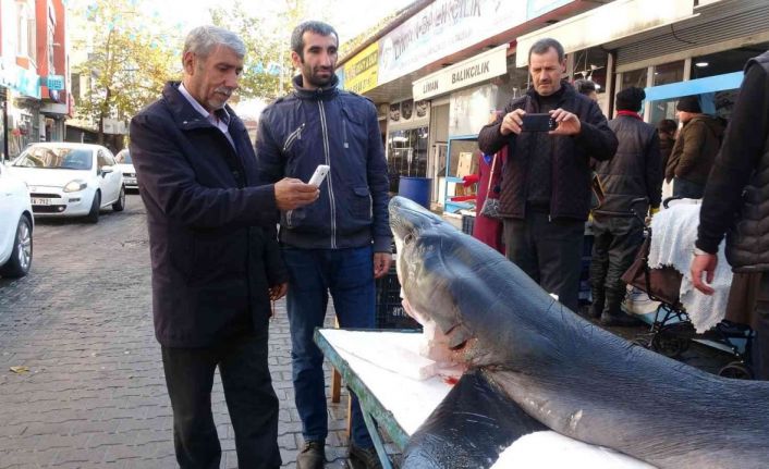 Bingöl’de bir balıkçı tarafından getirilen 3 metre 20 santim ve 200 kilogram ağırlığındaki köpek balığı, vatandaşların ilgi odağı oldu. Vatandaşlar satın almaktan çok fotoğraf çektirmek için yoğunluk oluşturdu.