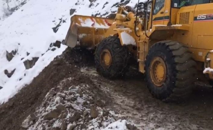 Bingöl’de kar yağışı sonrası oluşan heyelan yol kapattı, ekipler uzun uğraşlar sonucu kapanan yolu açtı.