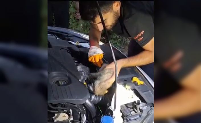 Mahalleye giden ekipler, uzun uğraşlar sonucu otomobilin motoruna giren ve orada mahsur kalan yavru kediyi çıkararak doğaya saldı.