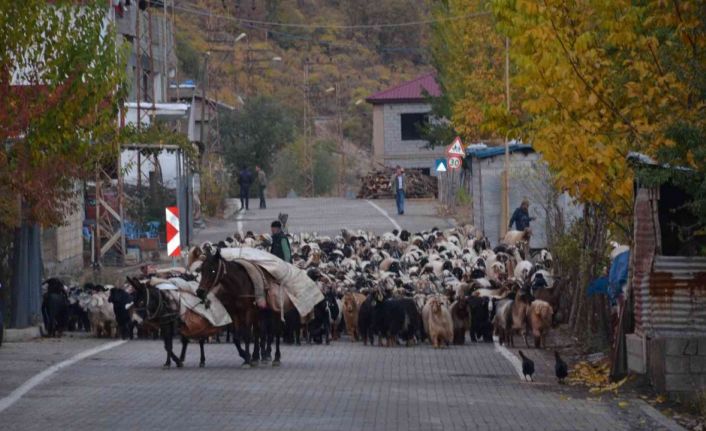 Dağlar beyaza büründü, son göçerler yaylalardan indi. Hakkari’den Şırnak’a gelmek için süren 16 günlük yorucu yolculuğun yarısı tamamlandı. Binlerce koyun ve keçi, sahipleri tarafından sıcak bölgelere götürülüyor.