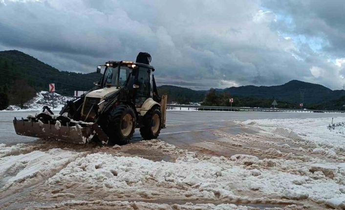 Kaş-Antalya Karayolu Sarılar Mahallesi mevkiinde bir anda yağan şiddetli dolu, karayolunu beyaza bürüdü. Trafikte aksamaların yaşandığı yolu açmak için belediye ekipleri çalışma başlattı.