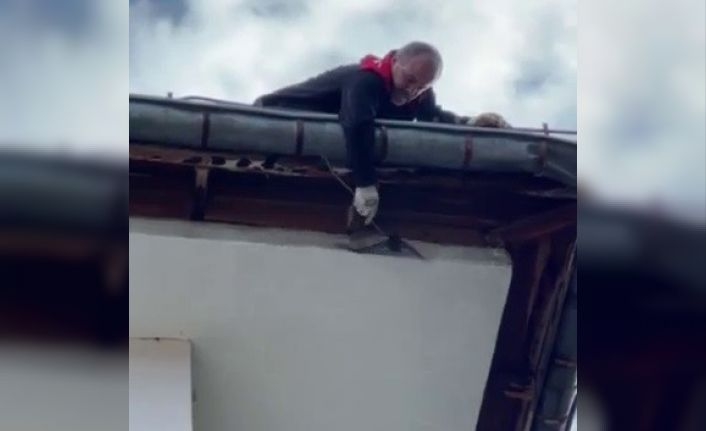 Sivas’ta itfaiye ekipleri çatıda boğazına ip dolanarak mahsur kalan ebabil kuşunu kurtararak doğal ortamına geri bıraktı.
