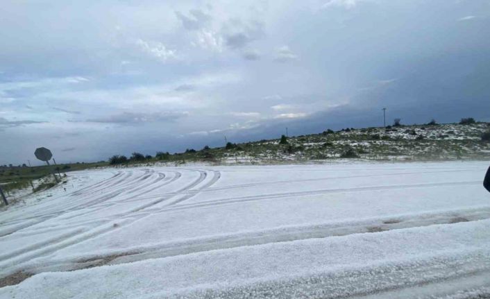 Bolu’nun Göynük ilçesinde yaylalar, etkili olan dolu yağışı nedeniyle beyaz örtüyle kaplandı.