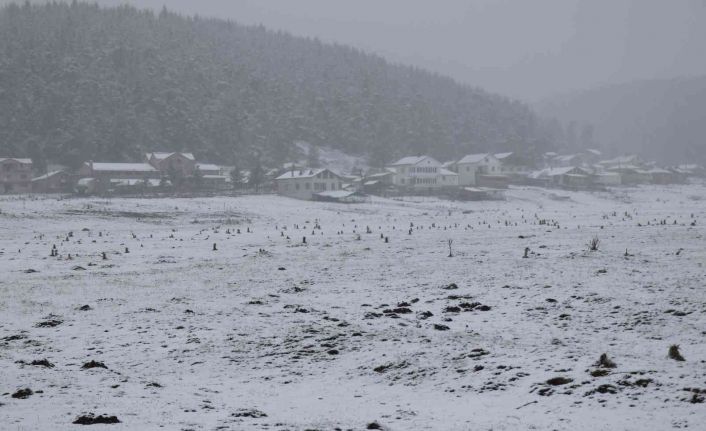 Bolu’nun yüksek kesimlerinde gece saatlerinde başlayan ve etkili olan kar yağışıyla birlikte yeşil alanlar beyaz örtüyle kaplandı.