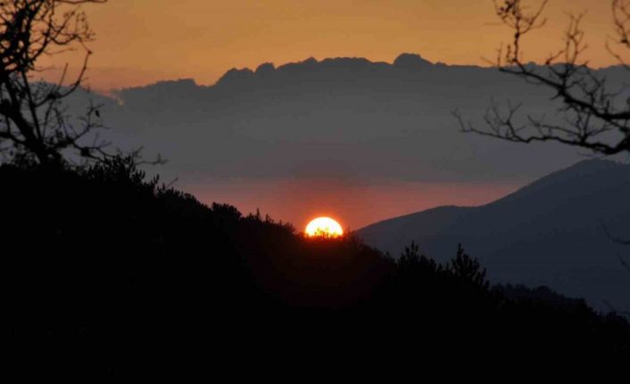 Bolu’nun yüksek kesimlerde akşam saatlerin güneşin dağlar arkasından battığı görüntü görenleri mest etti.