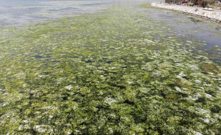 İzmir Bostanlı sahilinde "deniz marulu" olarak da adlandırılan aşırı alg çoğalması olayı devam ediyor. Deniz marullarının bir bölümü ekipler tarafından toplansa da, belli kesimlerde su yüzeyinin adeta yeşile büründüğü gözlendi.