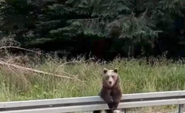 Zonguldak-Ereğli Karayolu üzerinde görülen boz ayı fotoğrafının çekildiğini anlayınca, adeta poz verdi.