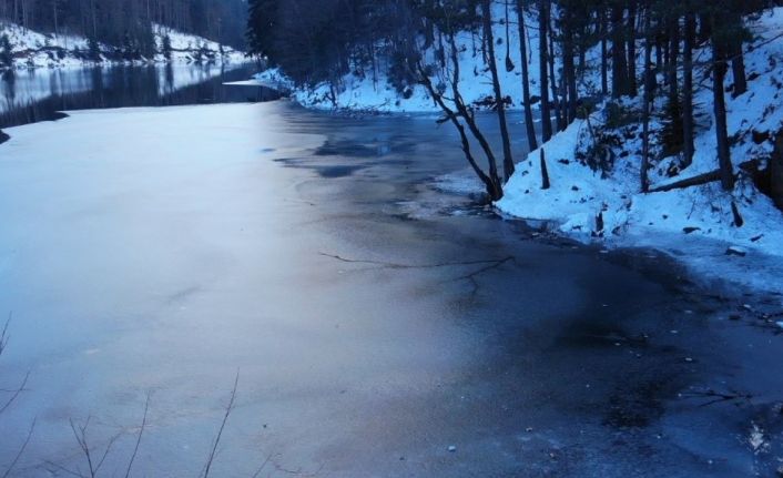 ’Göletler Diyarı’ Pazaryeri’nde bulunan Bozcaarmut Gölet’inin kıyı kesimleri soğuk havadan dondu. Havadan dronla görüntülenen gölet ve çevresinde kartpostallık manzaralar ortaya çıktı.