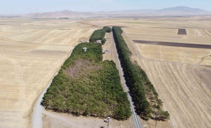 TCDD tarafından 1969 yılında Doğu Anadolu’daki tren yolları ile tren istasyonları çevresine yoğun kar yağışının rayları olumsuz etkilemesini engellemek amacıyla dikilen yaklaşık 20 bin çam ağacı havadan görüntülendi.