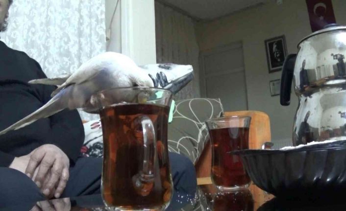 Elazığ’da, Mehmet Özçelik’e ait ’Maviş’ isimli muhabbet kuşunun bağımlılığı görenleri hayretler içinde bırakıyor. Çay tiryakisi olan Maviş, her gün sahibine eşlik ederek birlikte çay içiyor.