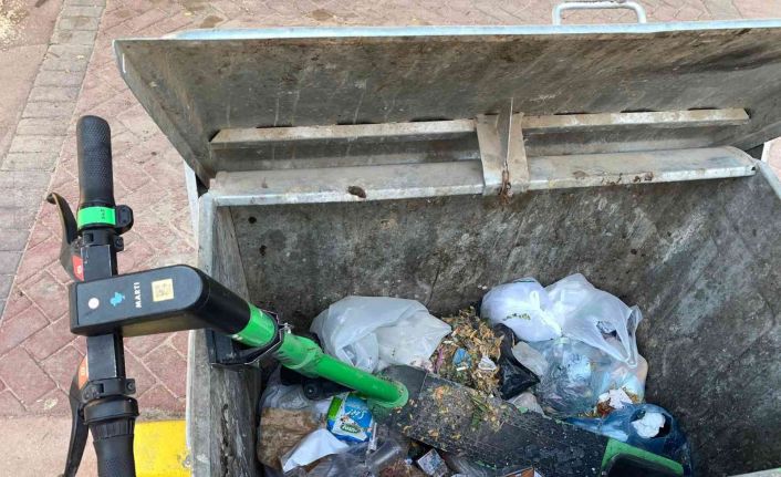 Eskişehir’de bir markaya ait olan elektrikli scooter, kimliği belirsiz kişiler tarafından çöpe atıldı.