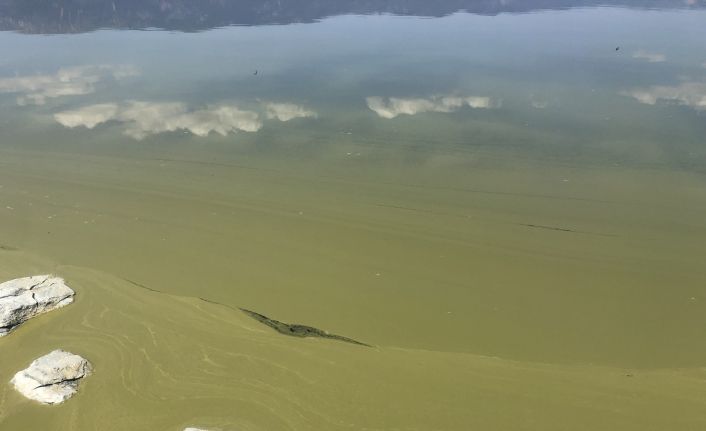 Doğal güzelliğiyle dikkat çeken Burdur Gölü’nün rengi alg patlaması nedeniyle yer yer kahverengi ve sarıya döndü.