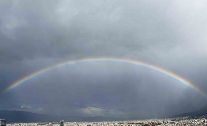 Bursa’da etkili olan yağışın ardından ortaya çıkan gökkuşağı görsel şölen oluşturdu.