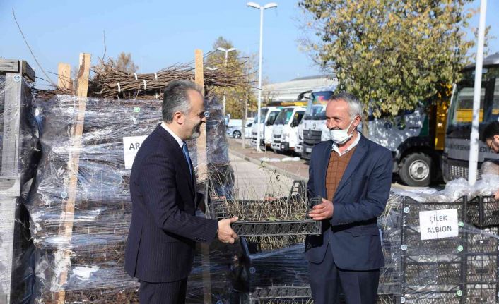 Konuşmaların ardından çiftçilere fidan dağıtımları yapıldı.