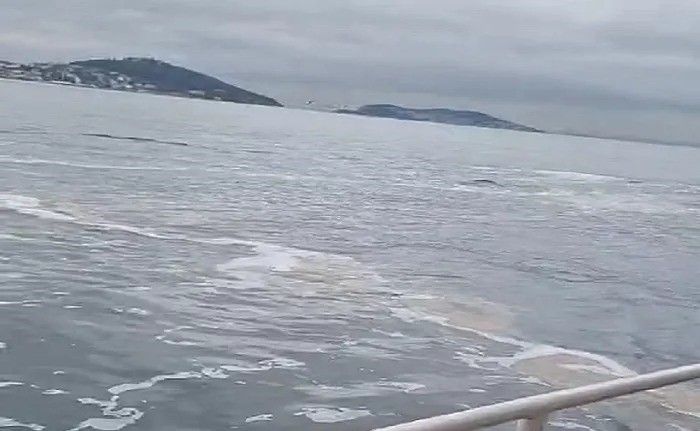 Büyükada kıyılarında müsilaj ortaya çıktı. Deniz yüzeyini kaplayan beyaz tabaka, bir vatandaşın cep telefonu kamerasına yansıdı.